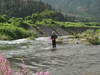日中は、暑くなり水温も24度まで上がり、川の水位も減水傾向になってきました。所々で網漁。上手な方は、1人でも30匹。 下宇津で、友釣りをされている人もおられます。 |