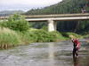 午前8時現在、約25センチから30センチ高、濁りはほとんどとれています。天候はくもり、午後からは晴れ間が出そうです。 昨日、周山大橋付近で58匹釣られた吉澤さん。(写真)
