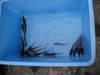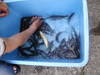 細野川でも午前中に20から30匹の釣果。サイズ15から18センチ(人見おとり店)