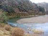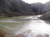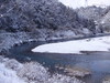約30センチ高、濁り無し。昨日からハエ釣りの方の姿が見えます。 昨日は、上流では、25センチの積雪。 写真左1は、昨日。右2は、本日。