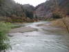 金曜日からの雨で増水しています。少しずつ引いてきていますが、約50センチ高。 |