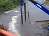 午後から雨は、やんでいます。 亀の甲橋工事で、濁っています。 |