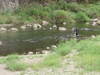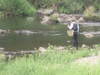 渕に残っている鮎を皆さん狙っておられます。 網と友釣り仲良くされています。午後から夕方に掛けて、場所によりますが浅瀬に出てきています。