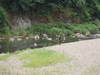 午前6時現在、約15センチ減水。上桂川チャリティー友釣り大会本部は、中江です。一般の釣り人さんには、お騒がせいたしますがご協力をお願いします。 大会で列んで釣られるとどこかのカ所がヒットします。パチンコの台と同じ。誰かが根掛かりで川へ入るとしばらく鮎は、見えなくなります。