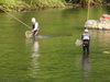 午前11時、漁協前へ鑓水プロと橋本プロ。20分で各3匹釣れていますが、鮎の群れは、午後からの方が多く見えます。