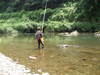 午後3時、漁協下で小倉プロ兄弟の競技。20匹以上釣られています。どちらかが? 花背橋本おとり店上流の方で、開原泰氏41匹。良いところに当たれば釣れそう。 山陵橋付近で29匹。下宇津橋上流10匹。漁協下流で道下氏22センチ級が釣れたそうです。 小学5年生の水口(ともき)君8匹、お父さん(繁夫さん)6匹。花背墓の上流で親子二人の競技大会。 時合いは、午後2時、4時、6時からの3段階、場所により、違いますが、意外と全般的にその傾向。 |