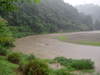午後5時30分、強い雨が降り、濁ってきています。水位のグラフもアップしています。 午後6時、漁協下で約50センチ高、赤濁り。山国から下流にかけて降っています。1時間75ミリ。上流花背は、29ミリ程度。