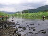 午前6時現在、約15センチ減水。上桂川チャリティー友釣り大会本部は、中江です。一般の釣り人さんには、お騒がせいたしますがご協力をお願いします。 大会で列んで釣られるとどこかのカ所がヒットします。パチンコの台と同じ。誰かが根掛かりで川へ入るとしばらく鮎は、見えなくなります。