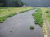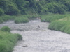 午後5時現在、漁協下で約10センチ高、薄笹濁り、明日は、今夜、夕立がない限り友釣り可能。泥水を運んだ状態。 |