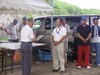 午前8時、ほぼ平水、濁り無し。昨日、午後から六ケ下流で40匹。内20匹は、入れ掛かり。昨日の水位アップで鮎が動いたと予測。流芯では、掛からなく、よどみやチャラで掛かったそうです。 写真左、昨日の報知オーナーカップ予選での鮎を小倉実行委員長から老人福祉施設へ寄付されました。感謝状が報知新聞社へ贈られました。