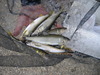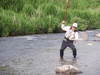 午後4時現在、今年の解禁、午前中は悪戦苦闘でした。ベテラン釣り師も四苦八苦。午後から情報収集に行きました。こきの周辺は、午後からも多い人です。午前中、多い人20匹、他の人5匹から10匹程度。0の人もおられると思います。 花脊八枡町付近で30匹(14から18センチ)。 ぴょんぴょん広場で一原康男氏45匹(15から20センチ)。奥さん30匹畳5畳分の一ヶ所。他の人5から20匹。下黒田、守口市の洞口氏33匹。山陵橋上流午後2時で蛭子野輝久氏38匹(14から20センチ)。鑓水猛氏50匹。すし米からエラの間、野間清氏65匹(16から20センチ)。他、湯口氏36匹。安東政徳氏栃本橋下流午前中16匹の釣果(詳しくは、安ちゃんのホームページへ)。細野川芦見口河合紘平氏午前中2時間で11匹、初めての方も17匹の釣果。他48匹、内22センチの情報(河合商店さん) |
