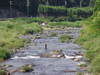 午後から追いもぼちぼちと良くなってきました。午後2時頃から夕方に掛けて良いポイントに入られた方が釣果を伸ばされています。午前中は、どこでも一ケタ台。 午後4時現在の釣果。花背大布施町18匹。山陵橋付近は、今日も解禁みたいな釣り人さんでにぎわっています。今日も蛭子野氏26匹。亀の子橋上流で伏見区の施長浩氏32匹。漁協下流18匹。約10センチ減水してきています。水温が上がる午後からは、アユも沢山見えます。今年は、水量が多かったので、もう少し、散らばっていると思いましたが、水温が低かった影響か群れアユです。 |