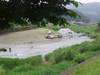 午前6時現在、山国地区内で70から80センチ高。漁協下で1メートル高。赤濁り友釣り不可能。 上流花背でも濁りがあり、このまま雨が降らなくて午後から一部でと言う状況。 細野川上流で笹濁り。上流一部で午後からの予測。