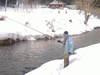 朝は、冷え込みが強く雪の上が歩けましたが、日が照るにつれ雪もゆるみ歩きにくく、ポイントの移動が難しくなってきました。川の中は、歩きやすいですが、歩くとしばらく釣れないようです。 午前中の釣果として、広河原杓子屋町上流で36匹、花背八桝町上流で47匹の情報。午前中で満足して帰られる方、あきらめて帰られる方、午後からも粘り釣果を伸ばされている方、いろいろですが、朝よりは、人も落ち着いてきました。あまご釣りには、天候が良すぎます。 |