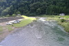 午前8時現在、山国地区で70から80センチ高。山陵橋付近も、濁りは、友釣りできる濁りに回復してきていますが、垢も飛び水位が高く、早くても明日ぐらいからと言う感じです。写真は、山陵橋下流(白川で薄緑色の水) 支流でも約30センチ高で垢が飛んだ状況ですが残り垢をねらうことが出来れば何とか出来ます。 本流でも、待ちきれない方数人入川されているそうです。車の駐車には、注意を、土砂を運んでいます。軟らかくでられなくなります。また、川底の状態も変わっています。無理して、腰まで入らないように。流されないように注意してください。前回もタモを多くの人が流されています。おとりと仕掛けは、多めに持って、根掛かりは、取りに行かずあきらめましょう。