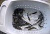 昨日の、最高釣果、山陵汀さんより山陵橋上流で蛭子野輝久氏76匹12から19センチ。(写真青色のコンテナ)。午後6時頃まで。夕方からも追い活発。 白色コンテナ。岡本おとり店さんより湯浅龍雄氏が弓槻大橋上流で釣られた鮎。 河合商店さんより、細野川65匹の報告をいただいています。