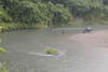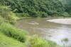 午前6時、水位は、50センチ程度高く、下流や中流部では、川幅の広いところが入れます。どこでもとは、行かないようです。 天気予報が、ハズレ。道が湿る程度の雨が降ってきました。