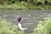 午前10時、雨あしが強くなってきました。少し水位が上がりました。約60〜70センチ高。この調子で降り続くと友釣りも不可能になってきます。