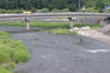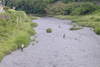 午後5時、約90センチ高、漁協前の岩の頭が見えてきました。 少し、空が暗くなってきました。夕立の可能性も。 今後、強い雨が降らなければ、上流一部と細野川が可能かと言うところです。上黒田 2.04m周山 0.95m中地 1.29m五本松 0.58m