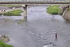 午後1時、1メートル高。漁協上流で1人無理して竿を出されています。試しづりのようです。(写真)