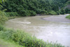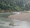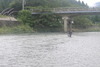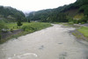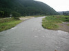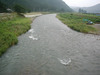 本日も、朝から小雨、水位は、約2メートルまで引いてきていますが、今後の雨で見通し付きません。濁りは、赤濁りから薄茶色です。 写真は、正午現在、左から山陵橋上流・漁協下流。漁協下流で1.5メートル高。薄茶色。今後の雨が気になります。 午後5時現在、漁協下で1.3メートル高まで下がっていますが、小雨が降ったりやんだり。 友釣りの見通し付かず。 |
