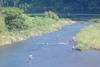 濁りは、ほとんどとれています。川が洗えているので深みは少しは、グリーンが入っているように見えます。水位は、約70センチから50センチ高場所によります。23日夕方と同じぐらいの水位です。天候くもり、日照り少なく水温も低く新垢付きにくい状況。アユも腹がへるのでドロ垢でもハンでくれると良いのですが?今日も残り垢を捜しての釣りだと思います。 23日、昨日より、おとりが入りやすくなっています。しかし、どこでもと言うところまで行きません。 正午現在、釣り人も少ないです。水位も朝とは心持ち減っています。午後から水温も少し上がると思います。大釣りされている様子でなさそうです。昼過ぎ から 雨 で 雷を伴う天気予報。午後2時上黒田 1.74, 周山 0.73で60から40センチ高。増えていたら夕立有り。 午後7時夕立は、逃れました。明日も水位は、10から20センチ引くとよそくします。流れの緩い浅いところでは、新あかもつきだしてくるかも。明日もどこでも入れる状況でないですが、入れる場所も広がってきました。 釣果の伸びは、午後から水温あがり照りつけたので昨日より、回復し場所ムラは有りますがぼちぼちと思います。