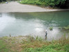 午前9時、釣り人亀の子付近3人程度、八千代橋、漁協下に1人地元の漁師も試しにこれからと言うところ。