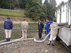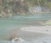 駆除申請調査後からカワウの飛来数増。 アユ放流前に頭を痛めています。 写真は、4月15日。今後、組合員によるテグス張りをします。ご協力をお願いします。 |