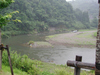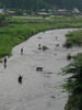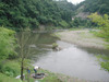 濁り無し25センチ減水に回復。午後から降水確率50パーセントです。 下流は、昨日の濁りが少しのこり薄い笹濁り。 雨足が強くなってきています。友釣りされている方は、少ないですがおられます。